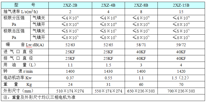 2XZ-B型號(hào)泵具有體積小、重量輕、噪聲低、真空度高 、起動(dòng)方便等優(yōu)點(diǎn), 此外,還有防止返油的措施和無防止油封漏油污染場(chǎng)地的措施。這樣,用戶可以避免安裝電磁充氣閥,該泵所有密封均用氟橡膠,保證不漏油,油箱頂部均采用“O”型圈密封。2XZ-B型泵裝有氣鎮(zhèn)閥,具有延長(zhǎng)泵油使用時(shí)間和防止泵油混水的作用。